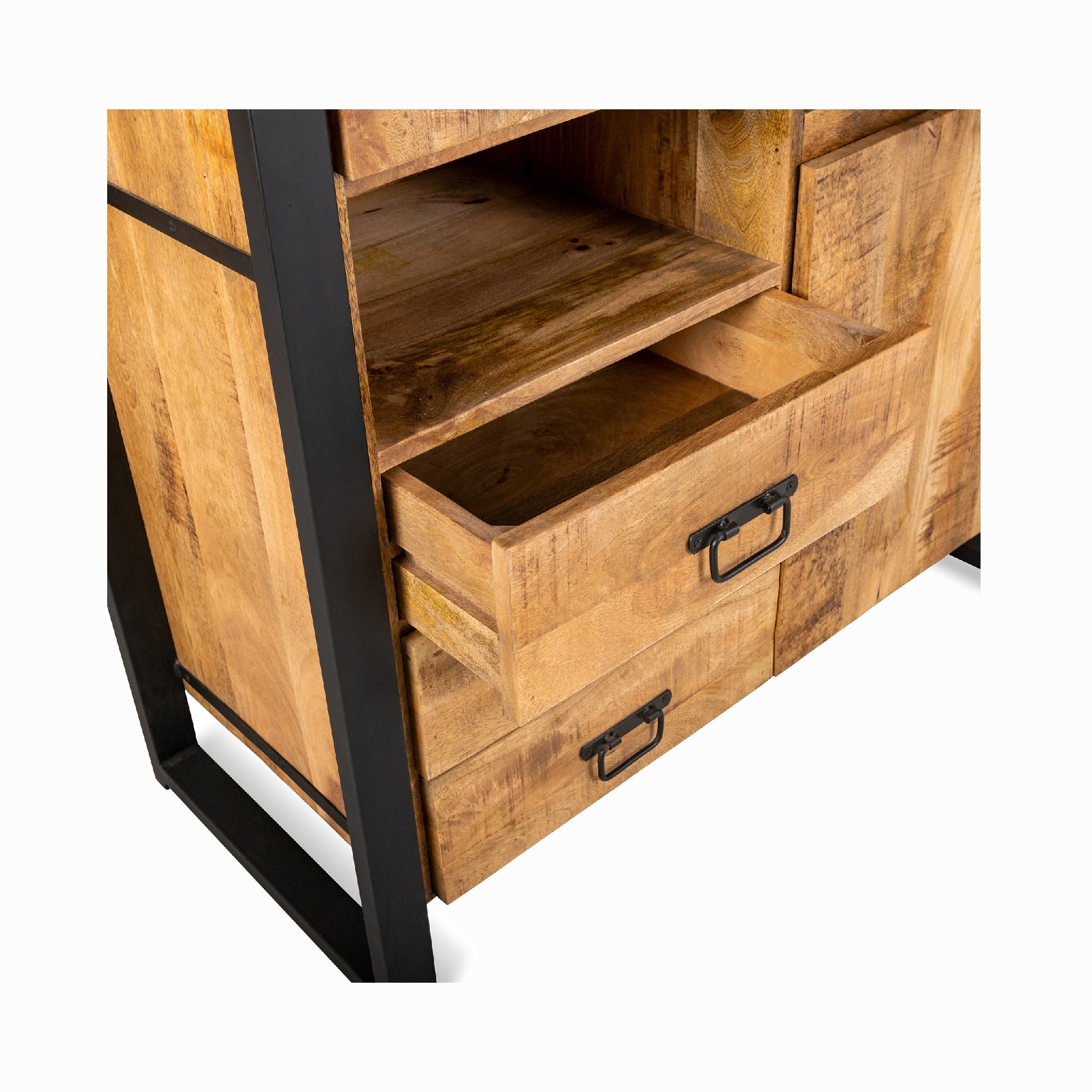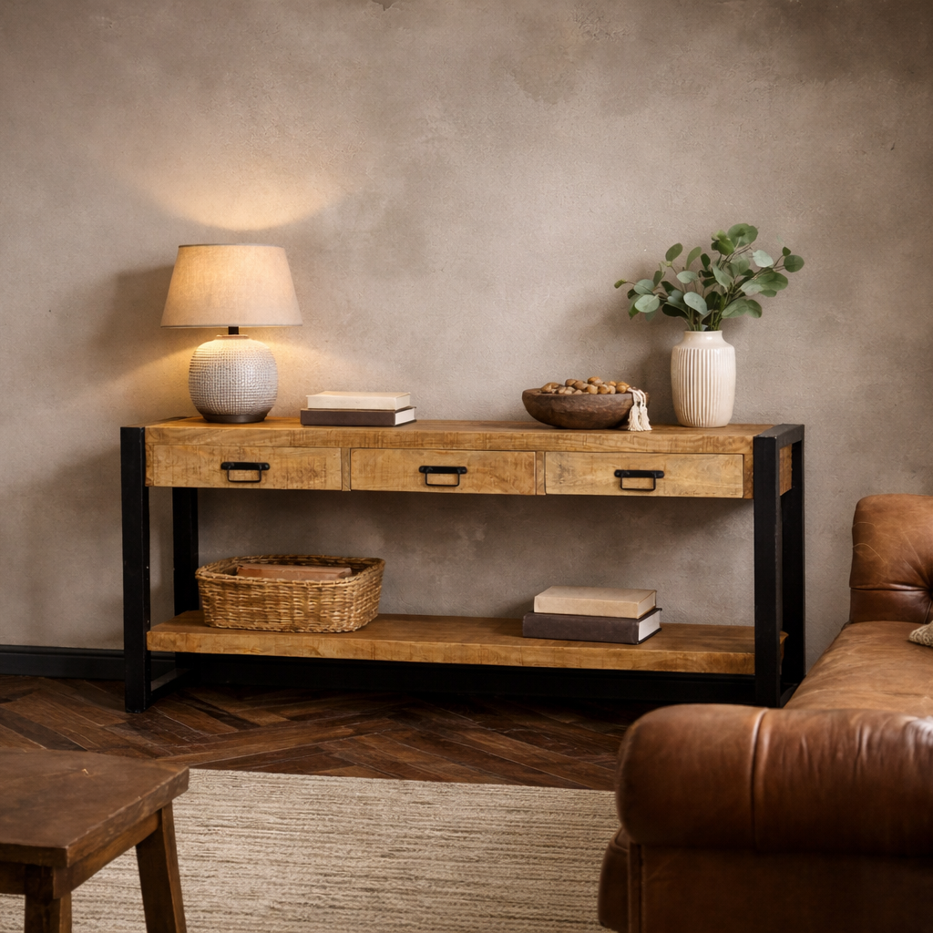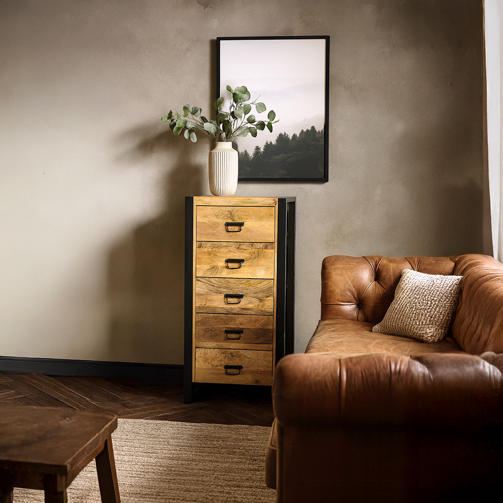 Onze meubelserie Britt combineert een strak, functioneel ontwerp met een stoer industrieel karakter. Het robuuste mangohout in combinatie met een slank metalen frame zorgt voor een moderne uitstraling die perfect past in een eigentijds interieur.